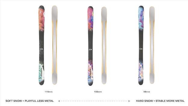 Freeride Flow Shapes er tilpasset ulike midjebredder og gjør det mulig å takle alt fra pudder til dyp snø, preparerte linjer til kuler – og alt imellom.